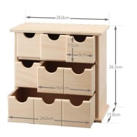ユニークな引き出しで、色々な大きさのものが収納できます。 一番上の段は3つともバラバラに、 二段目は右2つがくっついており、 三段目は全てくっついて開くようになっております。