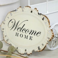 玄関先やガーデン入り口にぴったりのウエルカムプレートです。 ※こちらの商品は、シャビーな風合いを出すために、塗装のムラや剥げ、錆び、割れ、ヒビ、凹み等のあるアンティーク調仕上げとなっております。 商品によってサイズやアイアンの曲がり具合が異なります。